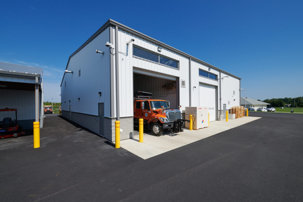 To meet DelDOT’s needs, the new facility features an above-ground fueling station and storage, a crew quarters and operations building, a maintenance building, a salt barn, a wash pad, and three truck sheds. The facility also meets LEED Silver standards for sustainability and incorporates system hardening and redundancy to support 24/7 critical needs operations.