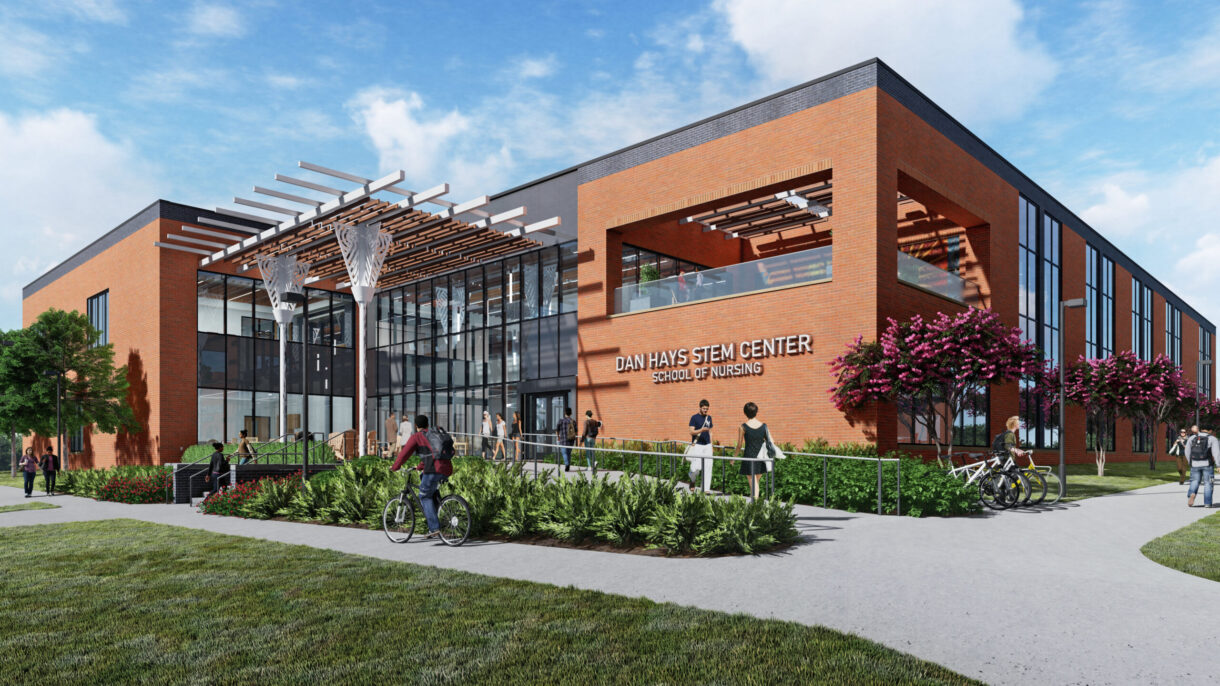 The new building anchors the northern edge of campus and while to the campus, sets a vision for the future of East Central University. Program areas group about a central building commons tied to programmable usable exterior spaces. The building offers a high degree of transparency both inwardly and outwardly to the community by putting these programs on display. The commons is supported by plentiful student collaboration areas, group study rooms, café, and lounges that have no peer elsewhere on campus. The new building also expands opportunities for community connections for continuing education and event planning. Large classrooms will have operable glass partitions to expand use into the commons for public and college events and other classrooms are able to open into labs for on-going lifelong learning and competency training for partner hospitals.